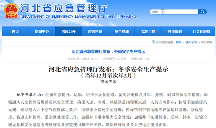 河北省應(yīng)急管理廳網(wǎng)站相關(guān)信息截圖