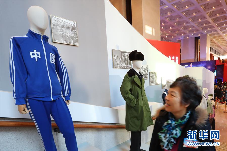 12月18日,參觀者在展覽上參觀服裝展臺。 截至當日,在中國國家博物館舉行的“偉大的變革——慶祝改革開放40周年大型展覽”累計參觀人數突破160萬人次。 新華社記者 張玉薇 攝