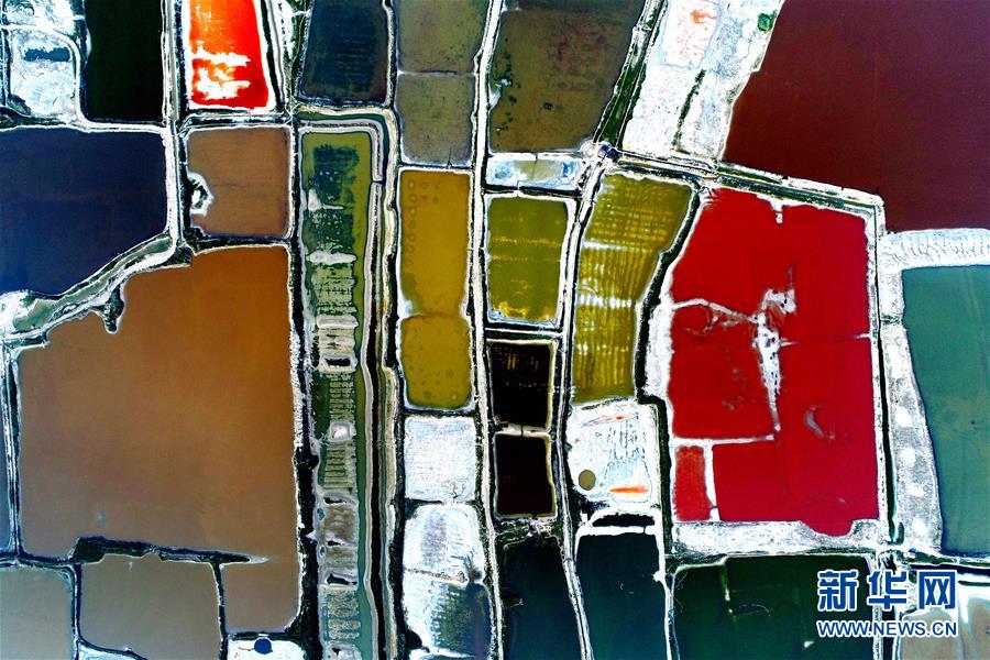 這是2018年7月24日在山西運(yùn)城鹽湖景區(qū)航拍的七彩鹽湖美景。大地之色,俯仰之間;壯美山河,是我的祖國(guó)。2018年,新華社記者操縱無(wú)人機(jī)“飛閱”華夏大地,在最美的時(shí)節(jié),定格下她的色彩斑斕。新華社發(fā)(薛俊 攝)