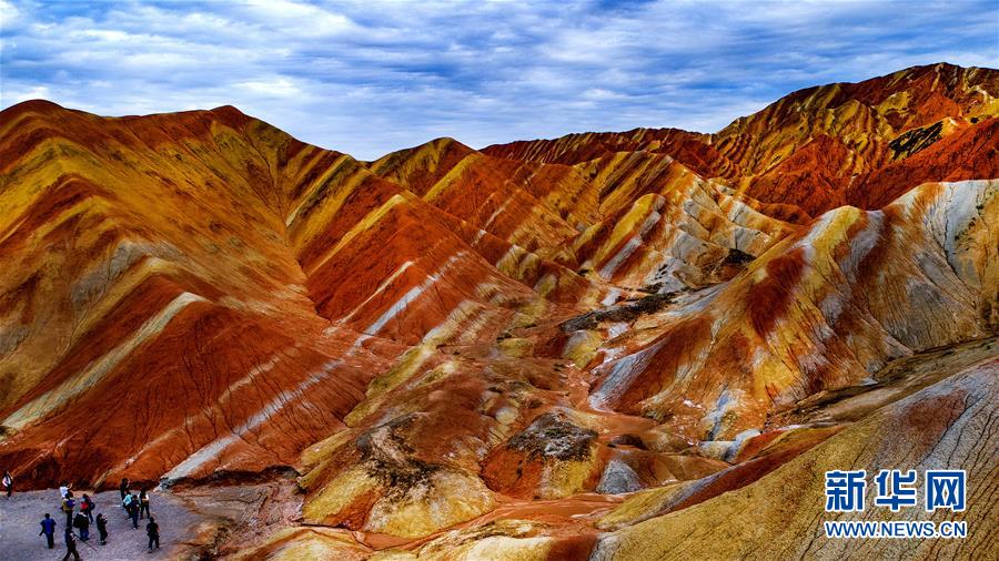 2018年9月5日,游人在張掖丹霞國家地質公園游覽。大地之色,俯仰之間;壯美山河,是我的祖國。2018年,新華社記者操縱無人機“飛閱”華夏大地,在最美的時節(jié),定格下她的色彩斑斕。新華社記者 陶明 攝