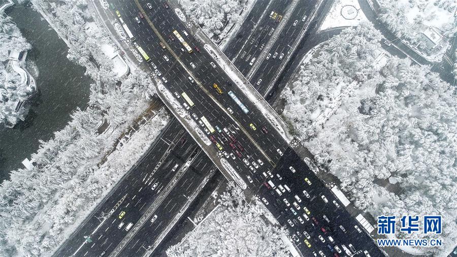 這是2018年10月18日航拍的雪后烏魯木齊西大橋。大地之色,俯仰之間;壯美山河,是我的祖國。2018年,新華社記者操縱無人機“飛閱”華夏大地,在最美的時節,定格下她的色彩斑斕。新華社記者 江文耀 攝