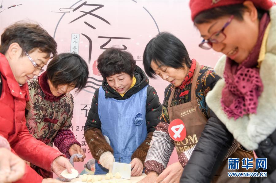 12月19日,合肥市云華社區居民一起包餃子迎冬至。