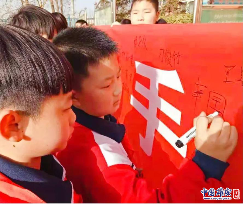 二是舉行環(huán)保簽名活動。為了提高師生的環(huán)保意識,帶動身邊更多的人來保護環(huán)境,12月4日,該校舉行了“小手拉大手,共同走遍雄安”環(huán)保簽名活動,讓廣大師生成為雄安新區(qū)生態(tài)環(huán)境保護的宣傳者、監(jiān)督者,參與到推動新區(qū)綠色發(fā)展的行動中來。