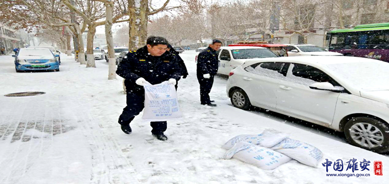 12月26日,雄安新區雄縣住房和城鄉建設局城管大隊開展化雪除冰工作。圖片由雄縣住房和城鄉建設局提供