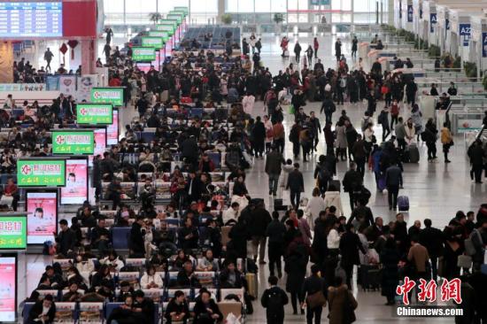 資料圖:高鐵已開售春運車票,車站內人頭攢動。中新社記者 張遠 攝
