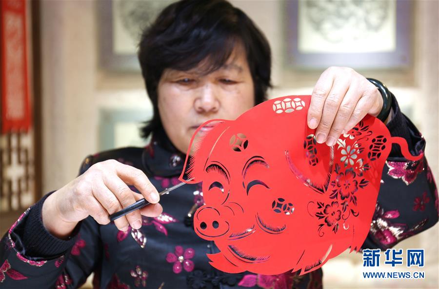 12月29日,在河北省承德市俊鳳剪紙創作室,剪紙藝人石俊鳳在創作賀歲剪紙作品。新年臨近,人們以各種各樣的方式迎接新年,表達對新年的祝福。新華社發(劉環宇 攝)