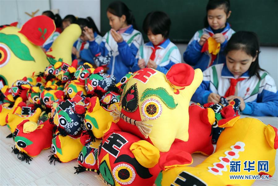 12月29日,在山東省濱州市博興縣實驗小學,學生在“巧手做布塑 快樂迎新年”活動中制作布老虎。新年臨近,人們以各種各樣的方式迎接新年,表達對新年的祝福。新華社發(陳彬 攝)