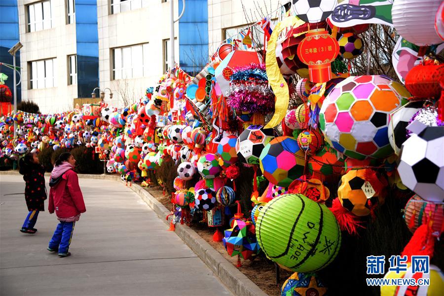 12月29日,在陜西省延安市實驗小學“燈籠展 迎新年”校園文化活動上,學生欣賞各種造型的燈籠。新年臨近,人們以各種各樣的方式迎接新年,表達對新年的祝福。新華社發(王福建 攝)