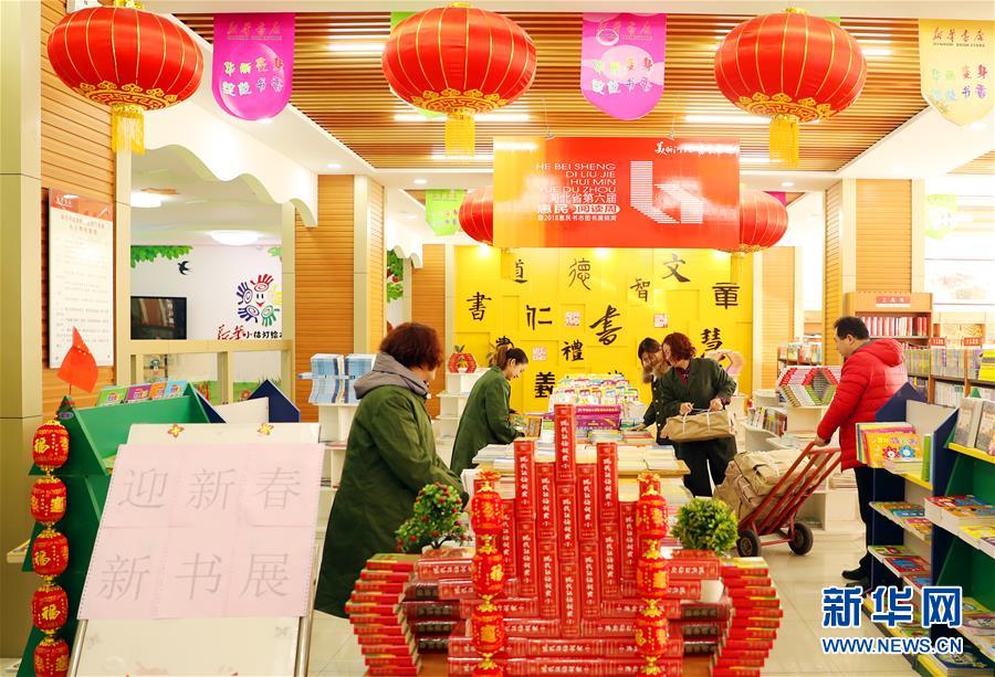 12月29日,在河北石家莊井陘縣新華書店,工作人員在布置新年新書展覽。新年臨近,人們以各種各樣的方式迎接新年,表達對新年的祝福。新華社發(張秀科 攝)