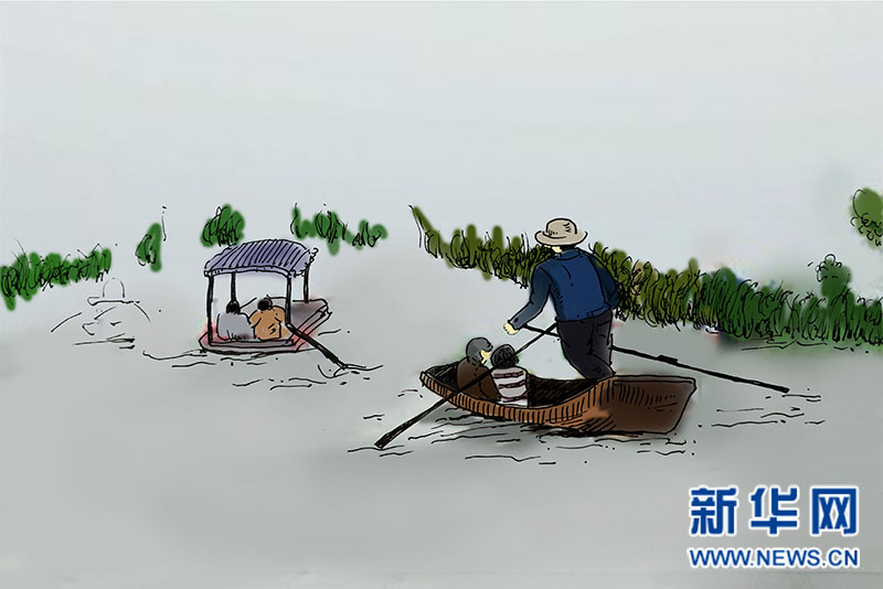 在白洋淀“以船代步”。
