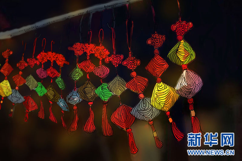 那時,人們有端午節(jié)掛香草荷包的習俗。荷包有雞蛋大小,是用五色絲線織的,內有一個裝香料的小布袋兒。據(jù)說掛香草荷包可以辟邪、防蚊蟲,男女青年掛荷包還可以迎來愛情。