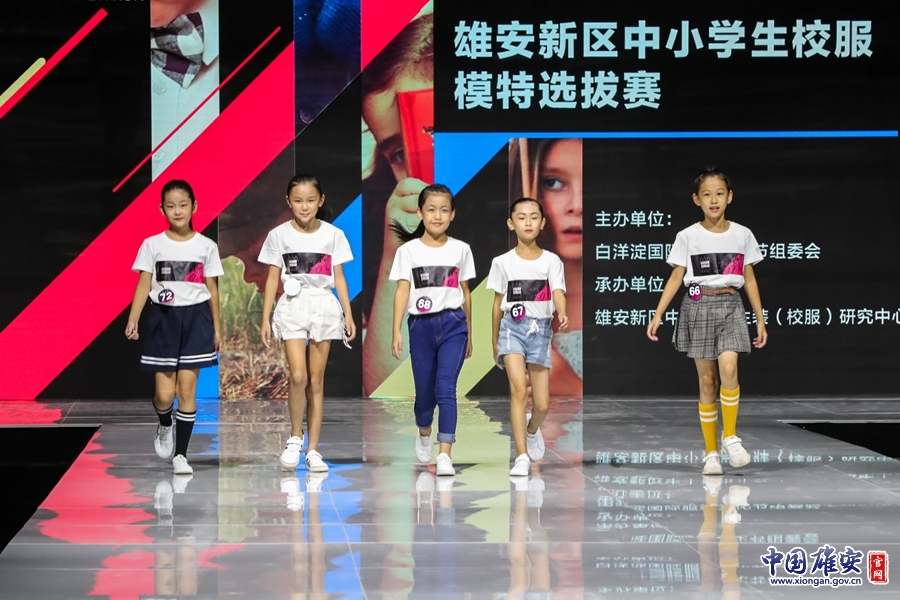 雄安新區中小學生校服模特選拔賽現場,小模特們昂首闊步,向前走來(2018年9月9日攝)。中國雄安官網記者馬夢迪 攝