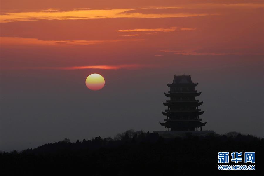 2019年1月1日,江蘇省淮安市盱眙縣都梁閣沐浴在朝陽的光輝中。當日是新年第一天,朝陽升起,萬象更新。新華社發(周海軍 攝)