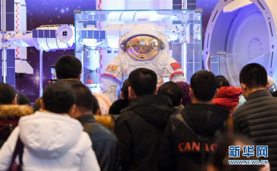 1月1日,觀眾在展覽上參觀艙外航天服。當(dāng)日是2019年元旦,大批觀眾來到中國國家博物館參觀“偉大的變革——慶祝改革開放40周年大型展覽”,截至當(dāng)日,累計參觀人數(shù)超過240萬人次。新華社記者 陳曄華 攝