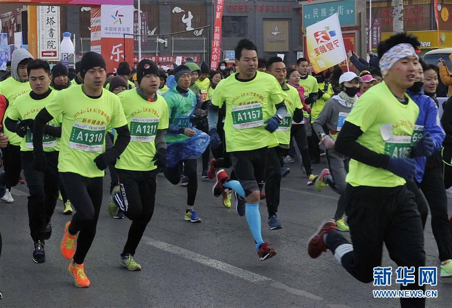 2019年1月1日,在寧夏銀川市,市民參加新年健身跑比賽,迎接新年的到來。