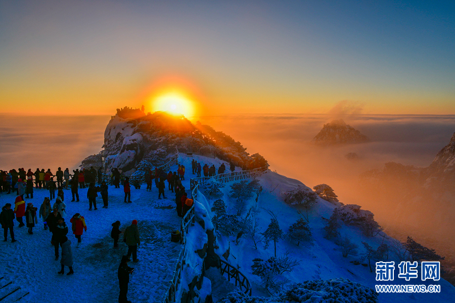 “冬韻黃山,別樣景致”,冬季的黃山迎來四季中最唯美浪漫的時刻。近日,一場降雪過后,黃山風景區銀裝素裹、巧石如玉,冬雪與奇松、怪石、云海巧妙結合,配以壯麗日出,將黃山裝扮成絕美的人間仙境。新華網發(水從澤 攝)