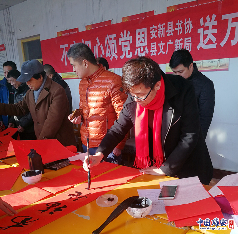 青年書法家王子璐進行書法創作。圖片由安新縣縣委宣傳部提供