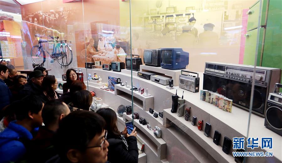 1月5日,觀眾在中國國家博物館內觀看反映改革開放40年來人民生活變化的實物展。