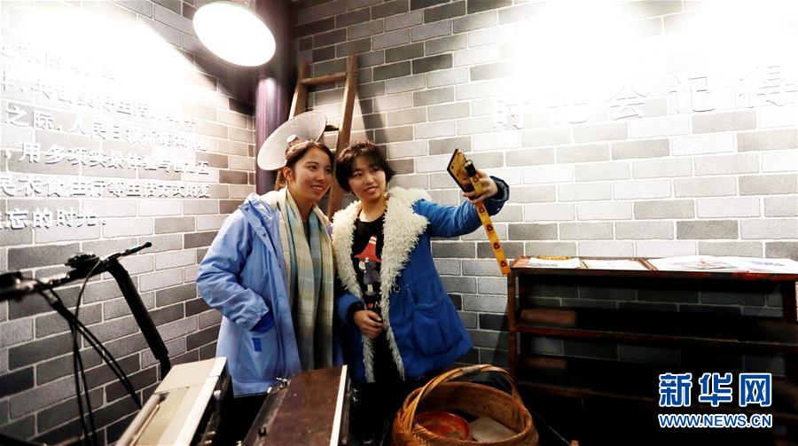1月5日,兩名觀眾在中國國家博物館內的“時光博物館”參觀拍照。