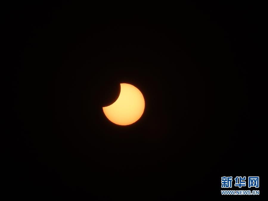 這是1月6日在北京拍攝的日偏食。當日,天宇上演“日偏食”罕見現(xiàn)象,我國可見地主要集中在中東部地區(qū),北方大部地區(qū)可見“帶食日出”。新華社發(fā)(張燕輝 攝)