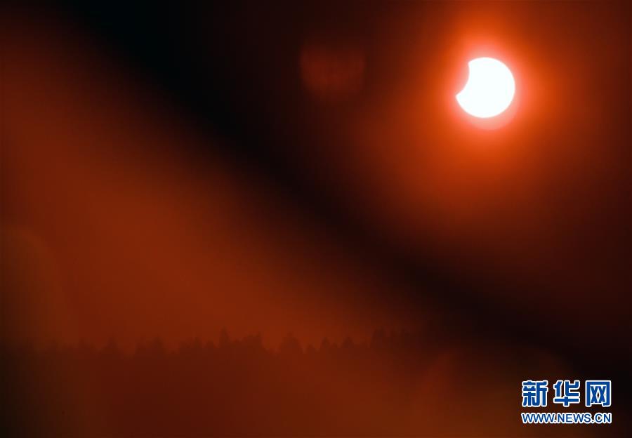 這是1月6日在濟南拍攝的日偏食。當日,天宇上演“日偏食”罕見現象,我國可見地主要集中在中東部地區,北方大部地區可見“帶食日出”。新華社記者 朱崢 攝