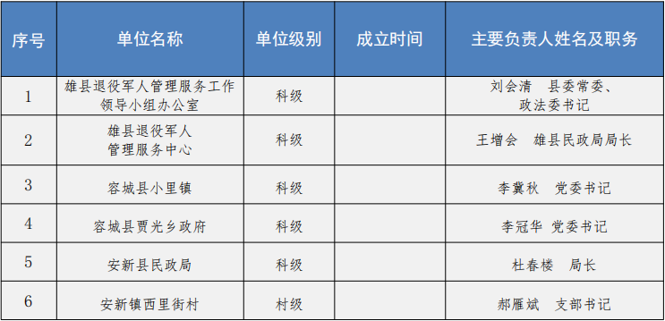 “河北雄安新區退役軍人管理服務工作先進單位”推薦單位基本情況匯總表