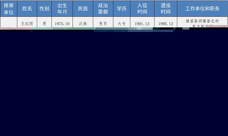 “河北雄安新區優秀退役軍人”推薦人選基本情況匯總表