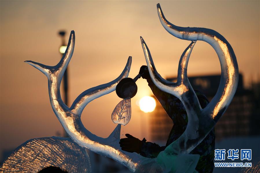 1月7日,參賽者在進行冰雕創作。 當日,在哈爾濱冰雪大世界園區進行的第三十三屆中國哈爾濱國際冰雕比賽進入第二天,參賽的冰雕作品已初露芳容。新華社記者 王建威 攝