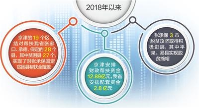 2018年以來,京津的19個區結對幫扶我省張家口、承德、保定的28個縣,其中貧困縣27個,實現了對張承保國定貧困縣幫扶全覆蓋。京津安排財政幫扶資金12.89億元,我省安排配套資金2.8億元。目前,張承保3市脫貧攻堅取得積極進展,其中平泉、易縣實現脫貧摘帽。