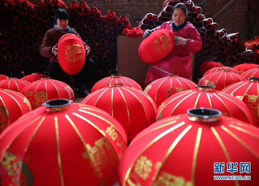 1月9日,河北省邢臺市任縣駱莊鄉村民在制作大紅燈籠。駱莊鄉是河北邢臺遠近聞名的燈籠制作基地。春節臨近,駱莊鄉燈籠生產企業和加工作坊加緊生產,以供應各地節日市場。新華社發(宋杰 攝)
