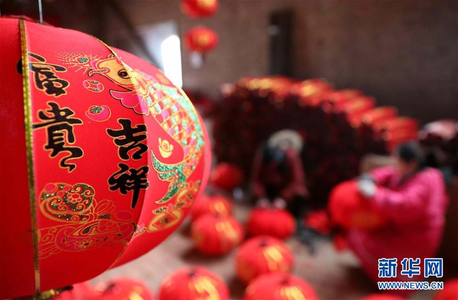 1月9日,河北省邢臺市任縣駱莊鄉(xiāng)村民在制作大紅燈籠。駱莊鄉(xiāng)是河北邢臺遠近聞名的燈籠制作基地。春節(jié)臨近,駱莊鄉(xiāng)燈籠生產(chǎn)企業(yè)和加工作坊加緊生產(chǎn),以供應(yīng)各地節(jié)日市場。新華社發(fā)(宋杰 攝)