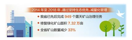 據統計,2014年至2018年,通過堅持生態優先,減量化管理,我省已先后完成949個露天礦山治理任務,修復綠化礦山面積7.32萬畝,全省礦山數量減少33%。