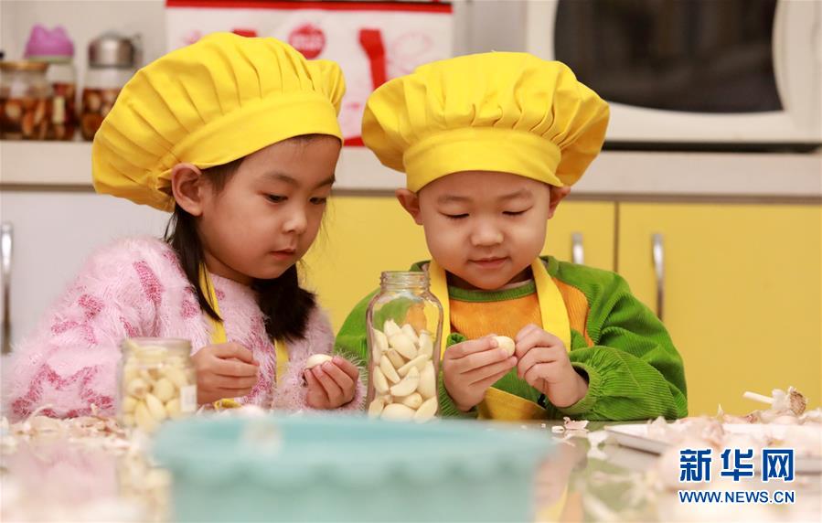 1月11日,在河北石家莊市第一幼兒園,孩子們?cè)趧兯鉁?zhǔn)備腌制臘八蒜。臘八節(jié)將至,各地學(xué)校、幼兒園開(kāi)展“迎臘八”主題活動(dòng),小朋友們?cè)诶蠋煹闹笇?dǎo)下了解臘八習(xí)俗,感受傳統(tǒng)文化魅力。新華社發(fā)(梁子棟 攝)