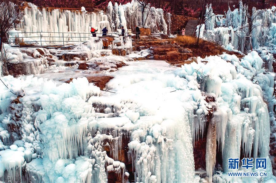 1月12日,游客在涉縣太行五指山景區(qū)觀賞冰瀑。新華社記者 王曉 攝