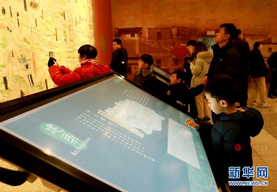 1月12日,在河北博物院,一名小朋友通過數(shù)字化展示屏搜尋敦煌壁畫信息。新華社發(fā)(梁子棟 攝)