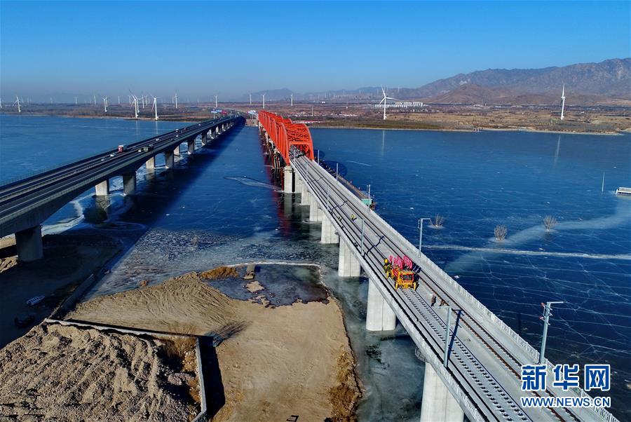 當日,京張高鐵官廳水庫特大橋鋪軌工作完成。京張高鐵全長174公里,是2022年北京冬奧會的重要交通保障線。