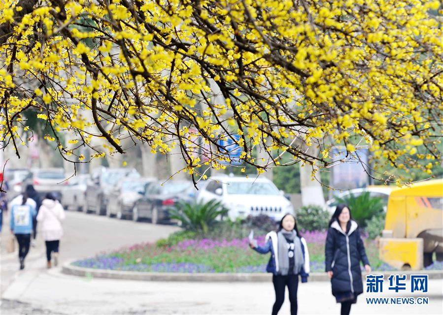 近日,河海大學校園內的蠟梅開放,香飄校園。