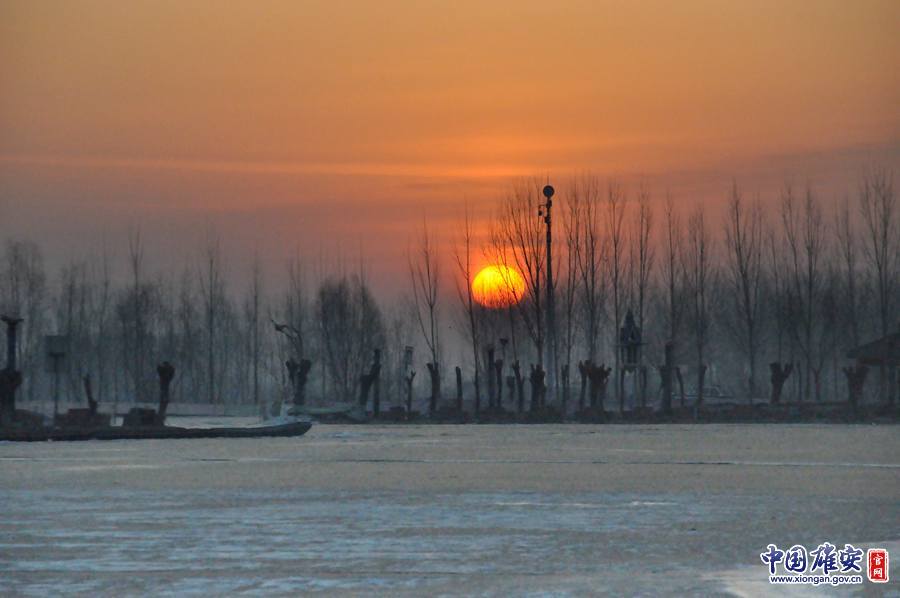 1月16日清晨,白洋淀上朝陽冉冉升起。中國雄安官網發 馬曉 攝