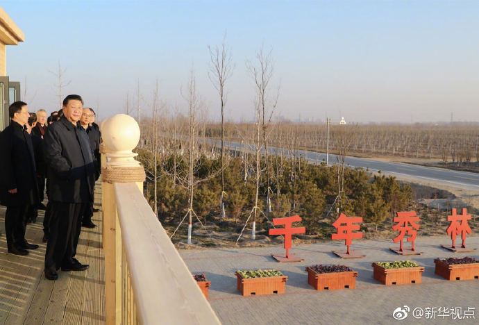 雄安新區堅持生態優先、綠色發展,率先啟動生態基礎設施建設和環境整治,目前已完成11萬畝“千年秀林”建設。16日下午,習近平總書記來到“千年秀林”大清河片林一區造林區域,乘車穿行林區察看林木長勢,登上秀林驛站二層平臺遠眺林區全貌,同當地護林員代表親切交流。他說,藍天、碧水、綠樹,藍綠交織,將來生活的最高標準就是生態好。雄安新區過去有一定的基礎,現在搞“千年秀林”,將來這里一定是最宜居的地方。綠水青山就是金山銀山,雄安新區就要靠這樣的生態環境來體現價值、增加吸引力。(記者張曉松、謝環馳、鞠鵬)