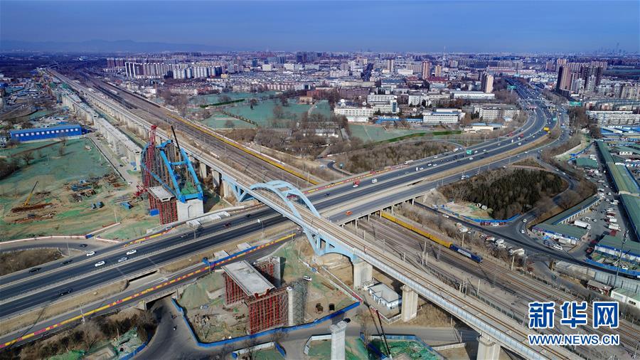 位于北京黃村的建設中的京雄城際鐵路(2019年1月5日無人機拍攝)。新華社記者邢廣利 攝