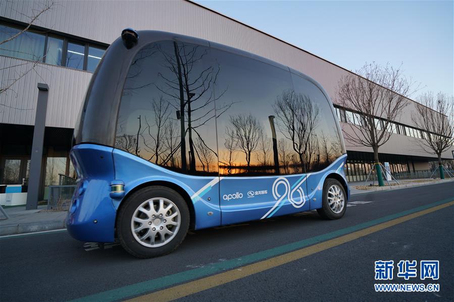 百度無人車在雄安新區市民服務中心內行駛(2018年12月7日攝)。 新華社記者牟宇 攝