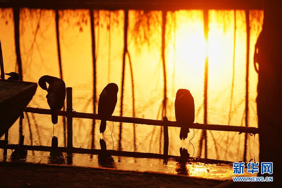 鸕鶿在白洋淀休憩(2018年12月7日攝)。新華社記者邢廣利 攝