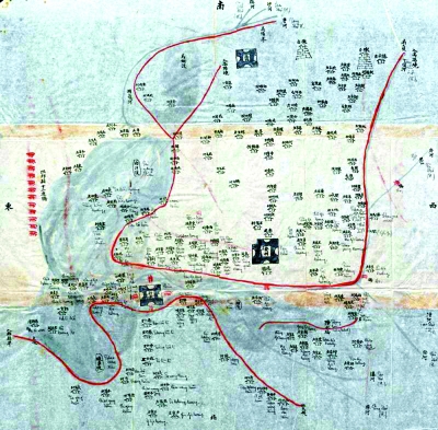 與水鄉風光相對應的,是朝廷持續不斷興修的水利工程??滴跞吣辏?698年),朝廷曾發帑將明代雄安地區各段河堤連結為一體,形成“千里長堤”,長堤圍繞白洋淀湖泊群兩岸,今任丘與安新境內部分河堤仍在延續使用“千里長堤”遺存。白洋淀東出水口水面廣闊,清代在趙北口自北向南連修橋梁十二座,以調節出湖水量。“十二連橋”至今仍有舊跡可尋。
