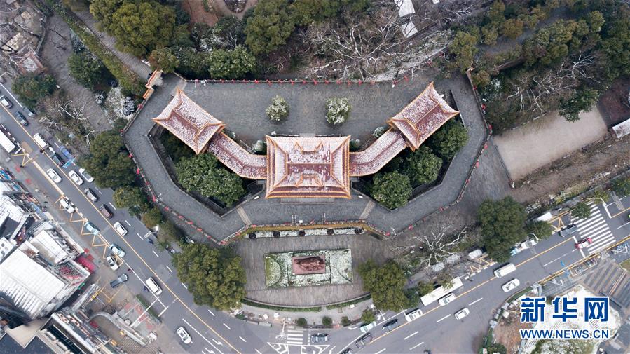 當日,湖南長沙市迎來一場降雪,古城樓天心閣在白雪的覆蓋下顯得靜謐雅致。