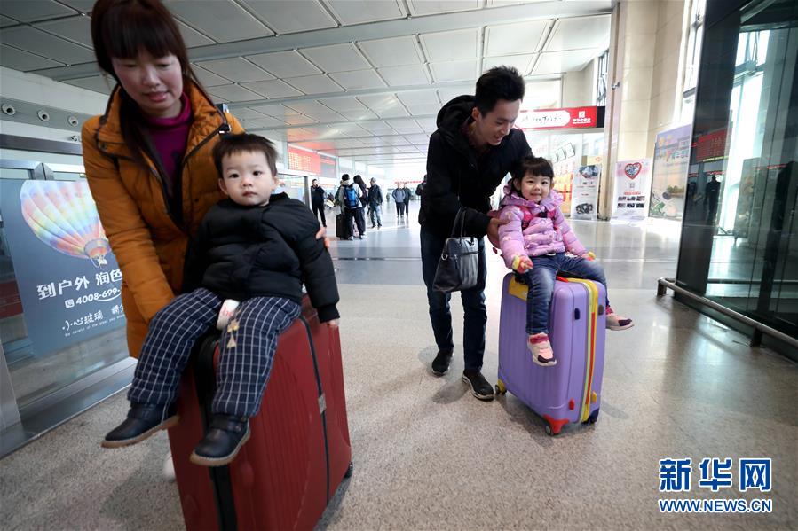 1月21日,在濟南西站,一對夫妻帶著孩子進站乘車。當日,為期40天的2019年春運正式啟動。新華社發(趙曉明 攝)