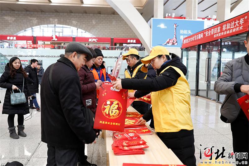 1月21日上午,河北省應急管理廳在全省啟動“安全帶回家,祥和過大年”主題志愿服務活動。各地安全生產志愿者走進火車站、汽車站、商場、旅游景點、社區等地,發放“家庭燃氣使用安全常識”“煙花爆竹燃放安全常識”宣傳頁、福字、春聯,宣講應急和安全知識,開展扶老助殘、出行導引等愛心服務。活動將貫穿整個春運期間,為期40天。