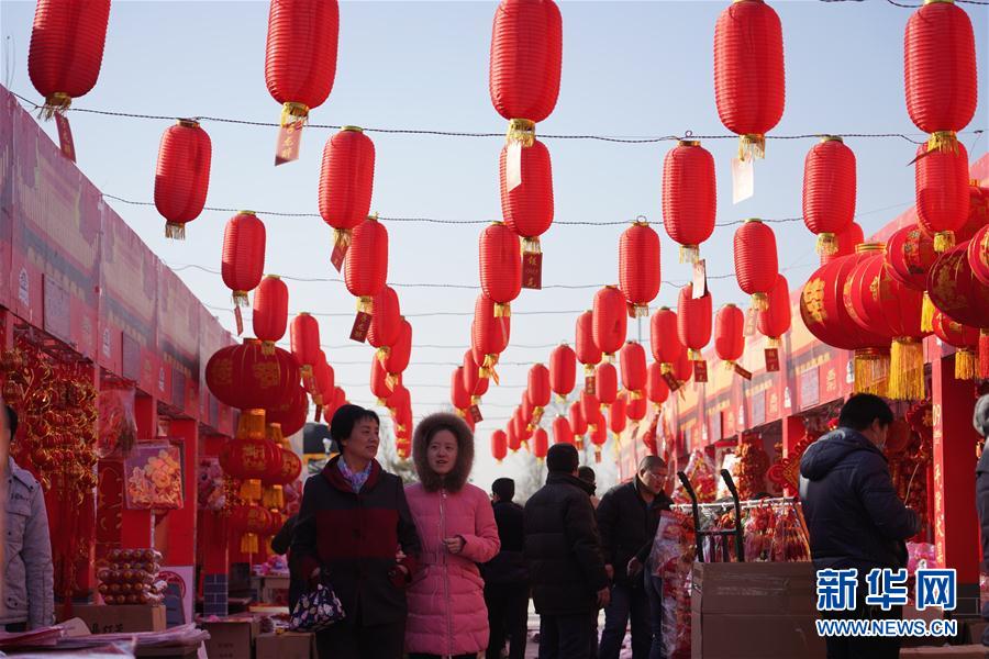 1月22日,人們在年貨大集上選購年貨。新春佳節將近,河北省正定縣正定鎮的年貨大集上年味漸濃。新華社發(武志偉 攝)