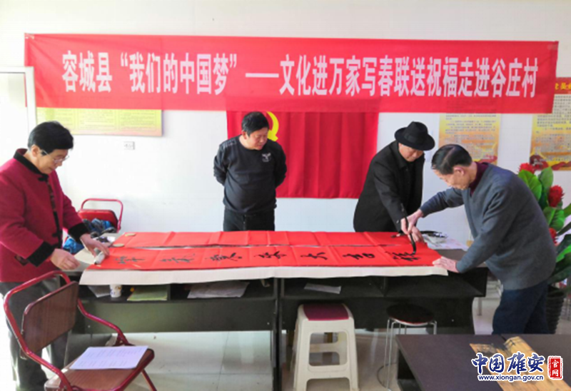 容城縣委宣傳部相關(guān)負責(zé)人介紹,本次活動為期4天,從1月21日至24日,書法家們將先后在容城縣各鄉(xiāng)鎮(zhèn)的8個村莊進行現(xiàn)場創(chuàng)作,為貧困戶、五保戶、退役軍人、勞動模范為主的廣大群眾送上飽含美好祝福的春聯(lián)和福字。