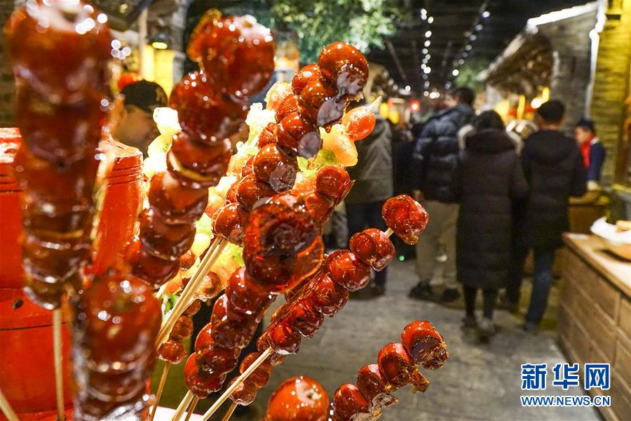1月26日,市民在河北省唐山市美食文化街游玩。春節臨近,各地的集市、市場年味濃濃,處處洋溢著喜迎新春佳節的氣氛。新華社發(劉滿倉 攝)