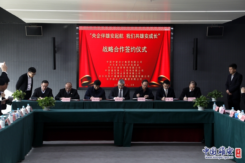 中國雄安官網1月28日電(記者李晏)1月28日,“央企伴雄安起航,我們共雄安成長”戰略合作聯合體簽約儀式在雄安市民服務中心舉行,該聯合體由中建設計集團發起,與河北省文化經濟促進會、華北石油管理局、中建二局、寶石花物業、寶石花醫療健康投資控股集團、北方凌云工業集團共7家單位組成。
